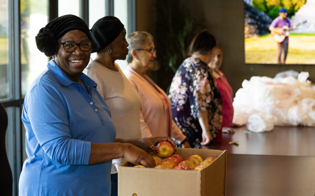 The event has become a cornerstone of community life. Seniors often arrive up to 90 minutes early to visit with neighbors while they wait. Ramona and many others volunteer to help pack food bags for their fellow residents.